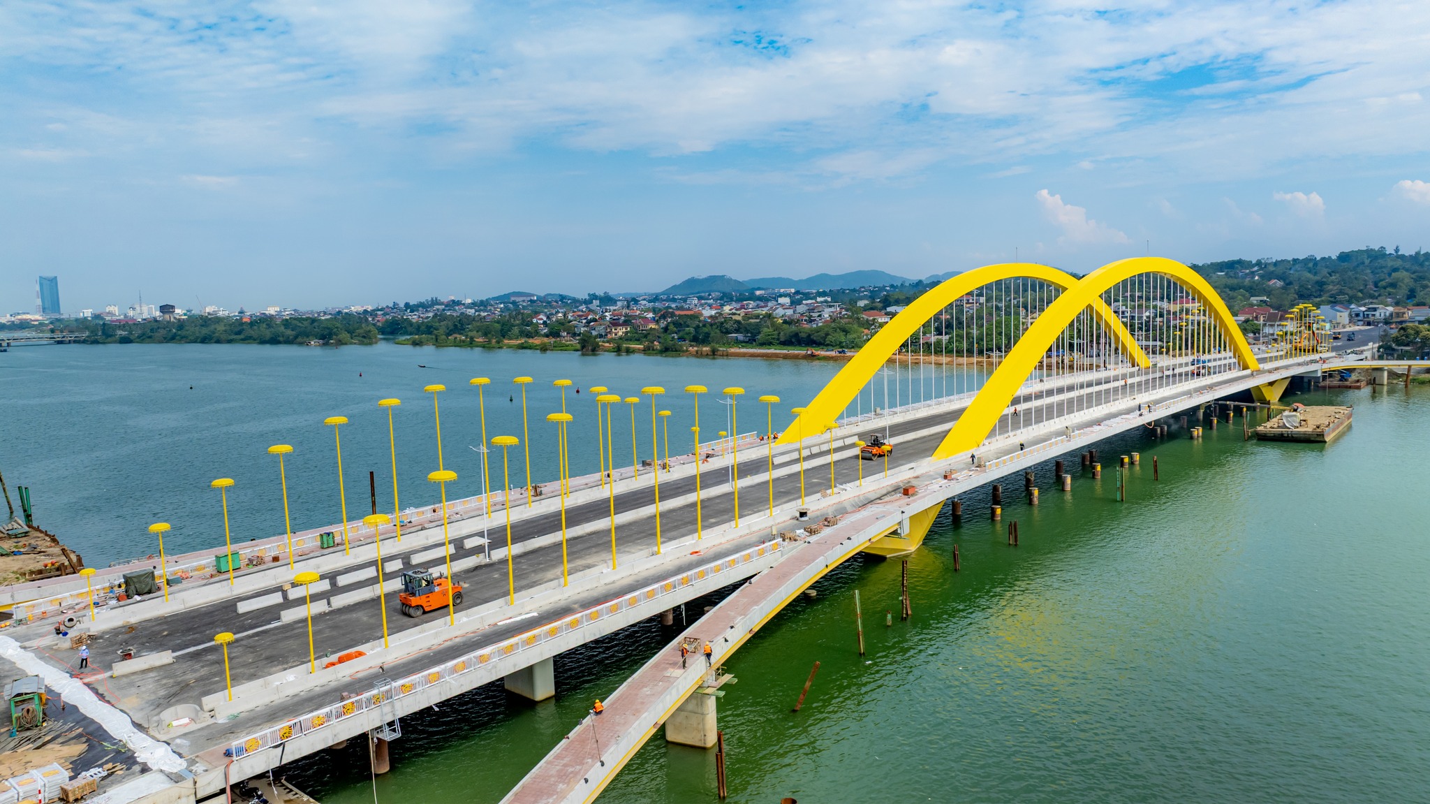 Cầu Nguyễn Hoàng bắc qua sông Hương (TP.Huế), với tổng mức đầu hơn 2.280 tỉ đồng đang gần “về đích” sau hơn 2 năm thi công.