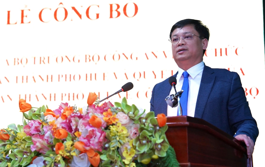 Ngày 1/3, Công an TP. Huế tổ chức Lễ công bố các quyết định của Bộ trưởng Bộ Công an, Giám đốc Công an thành phố về sắp xếp tổ chức bộ máy và công tác cán bộ.