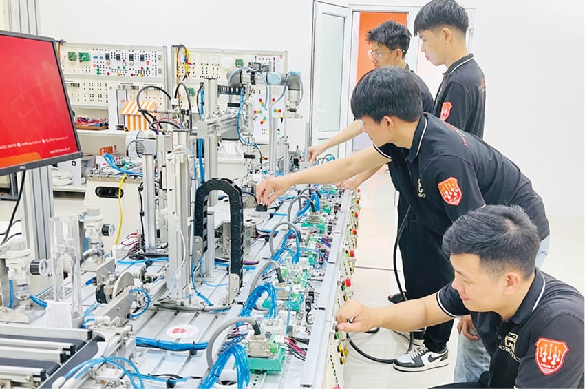 Trong quá trình học tập tại HUET, Sửu được đào tạo bài bản về các kiến thức chuyên môn trong lĩnh vực kỹ thuật điều khiển và tự động hóa, gồm các môn học như hệ thống điều khiển, robot và tự động hóa, mạng cảm biến và IoT… Ngoài lý thuyết, em cũng tham gia vào các dự án thực tế, từ đó cải thiện khả năng ứng dụng kiến thức vào thực tiễn. Có cơ hội thực tập tại các công ty, giúp Sửu hiểu rõ hơn về nhu cầu thực tế của ngành và cải thiện kỹ năng làm việc nhóm, giao tiếp và giải quyết vấn đề liên quan.