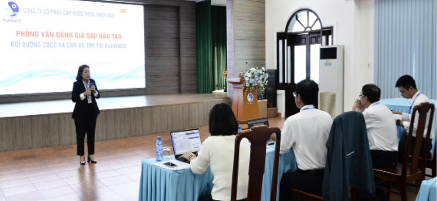 Công ty chú trọng triển khai công tác đào tạo thường xuyên, liên tục và hiệu quả với hơn 35 khóa đào tạo, gần 1.100 lượt CBCNV tham gia đào tạo trong năm 2024. Đáng chú ý, để nâng cao hiệu quả công tác đào tạo, bồi dưỡng, nâng cao trình độ quản lý, quản trị, phát triển đội ngũ lãnh đạo kế cận, HueWACO đã tổ chức Khóa đào tạo nội bộ với sự tham gia của gần 50 học viên là cán bộ chủ chốt, cán bộ trẻ được quy hoạch vào các vị trí cán bộ quản lý của công ty.