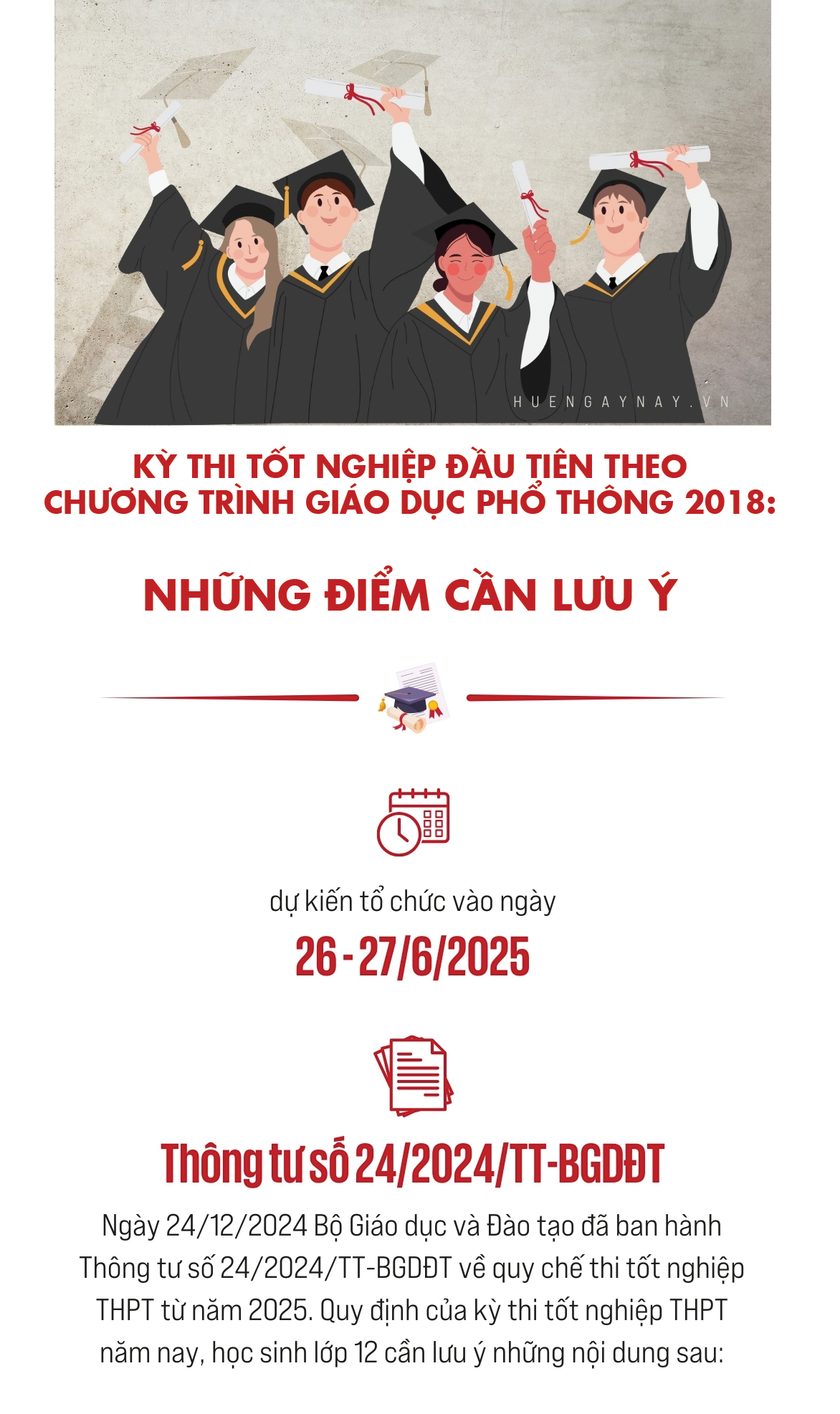 Năm nay, kỳ thi Tốt nghiệp Trung học phổ thông (THPT) đầu tiên của chương trình Giáo dục phổ thông (GDPT) 2018 được Bộ Giáo dục và Đào tạo dự kiến tổ chức vào ngày 26/6/2025 đến 27/6/2025. So với kỳ thi tốt nghiệp THPT những năm trước, với quy định của kỳ thi tốt nghiệp THPT năm nay, các em học sinh lớp 12 cần lưu ý.